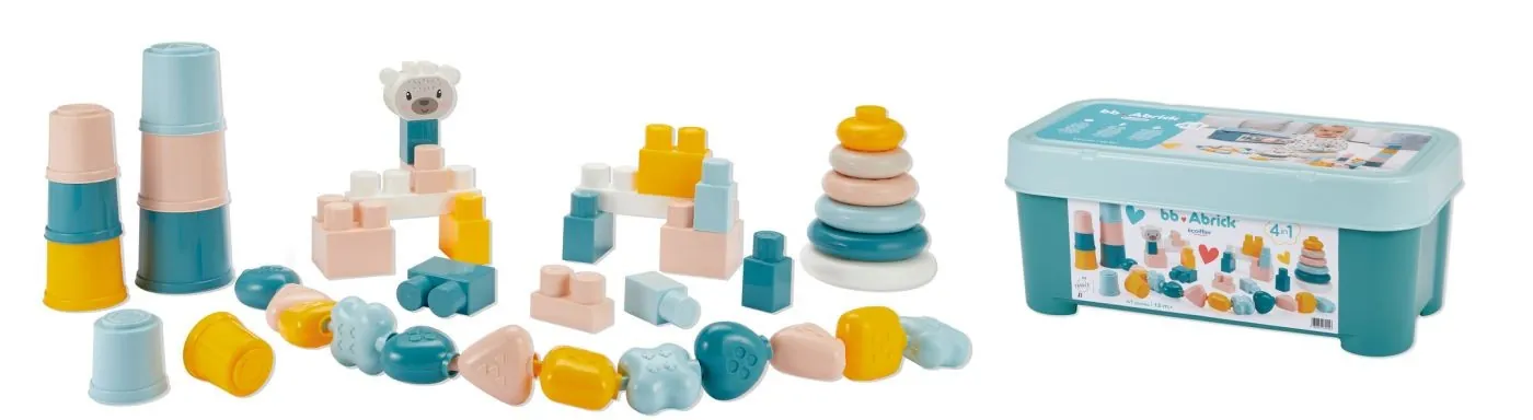 Setul Ecoiffier BB Abrick 4 în 1 oferă copiilor mici joacă creativă și educativă, cu piese sigure și ușor de manevrat, ideale pentru primii pași în lumea construcțiilor.
