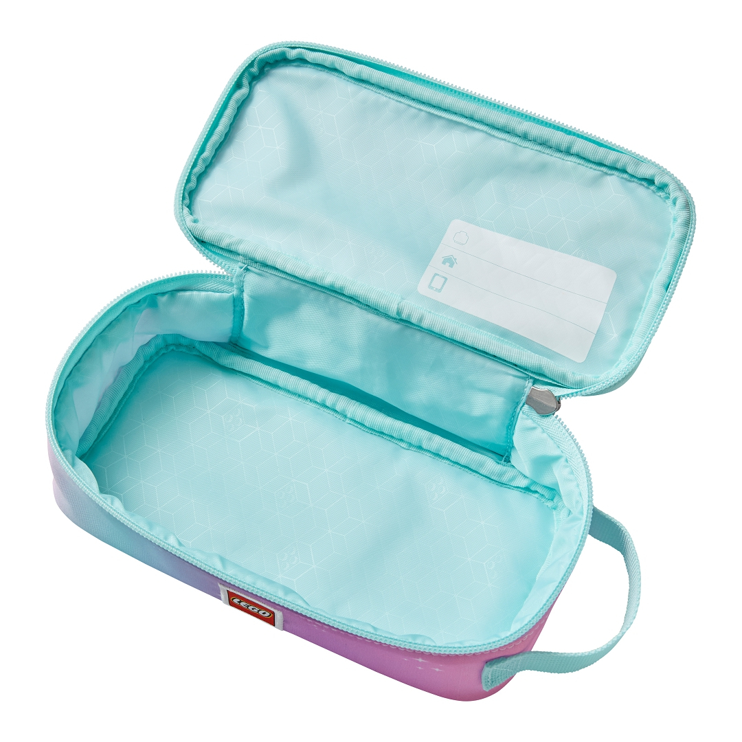 Penar neechipat LEGO cu 1 compartiment, etichetă de nume și mâner lateral, dimensiuni 21 × 6 × 10 cm, volum 1 L, material rPET 300D w-WR, recomandat 6+.