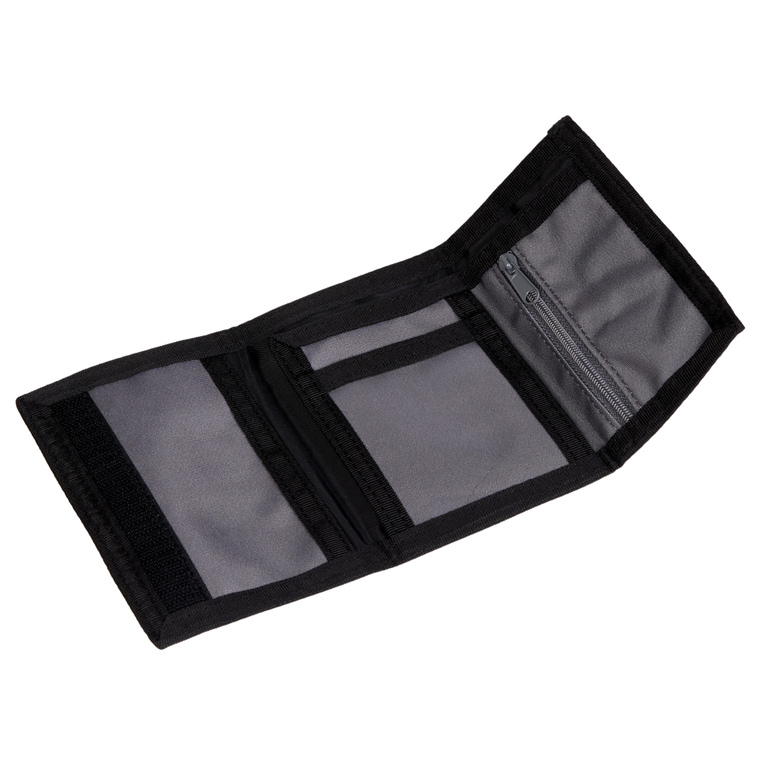 Portofel compact pentru copii de 6+ ani, cu inchidere cu scai (Velcro) si buzunare dedicate pentru monede. Include doua compartimente cu fermoar si eticheta interioara pentru nume.
