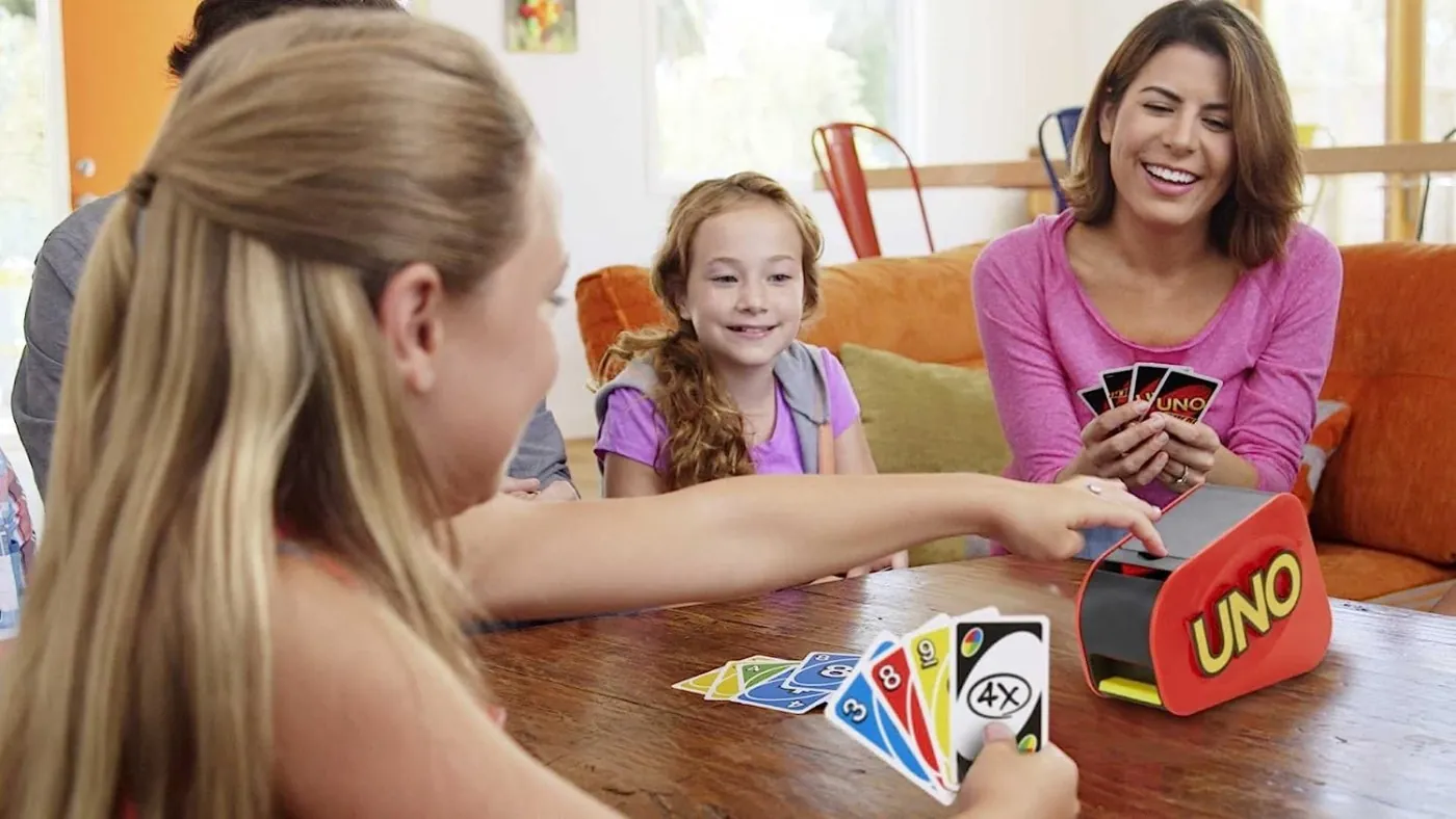 Aceasta editie de UNO Extreme dispune de un lansator de carti actualizat, cu un design atragator care arunca sus in aer cartile. Lumini si efecte sonore cool care clipesc mai rapid de fiecare data cand este apasat butonul cresc suspansul. Asteptarea momentului in care cartile zboara e aproape imposibil de suportat! Asezati cartile in lansator, apoi jucati jocul de carti preferat de toata lumea. Daca apare cartea &bdquoLovitura extrema&rdquo, aveti grija! Cand jucatorii mai au o singura carte, trebuie sa strige &bdquoUNO!&rdquo Culorile si decoratiunile pot varia.
