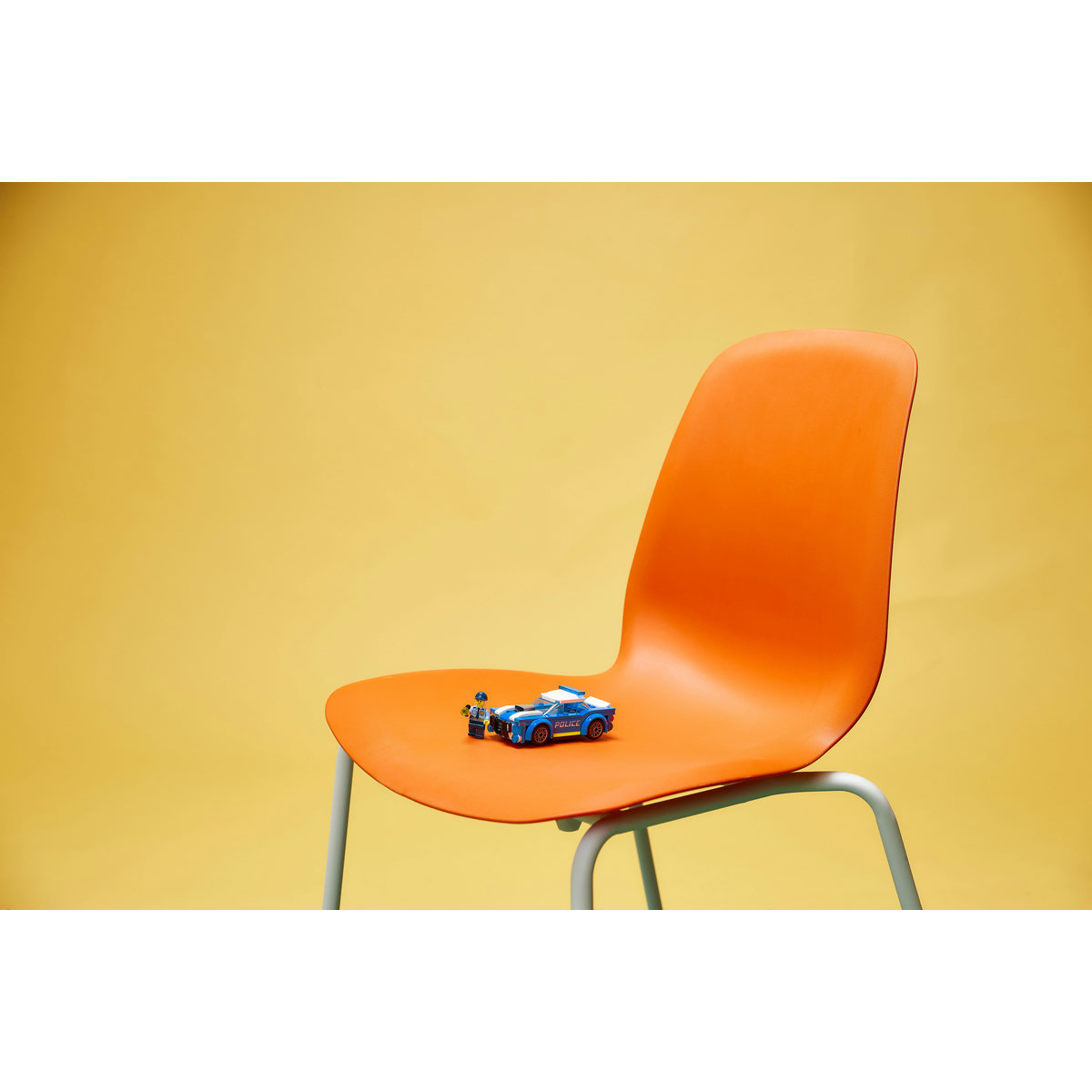 Set LEGO City cu mașină de poliție pentru 5+, creat pentru urmăriri rapide și joacă de rol „polițist în oraș”. Accent pe design sport (jante late, aripi evazate, faruri) și joc imediat după construcție.