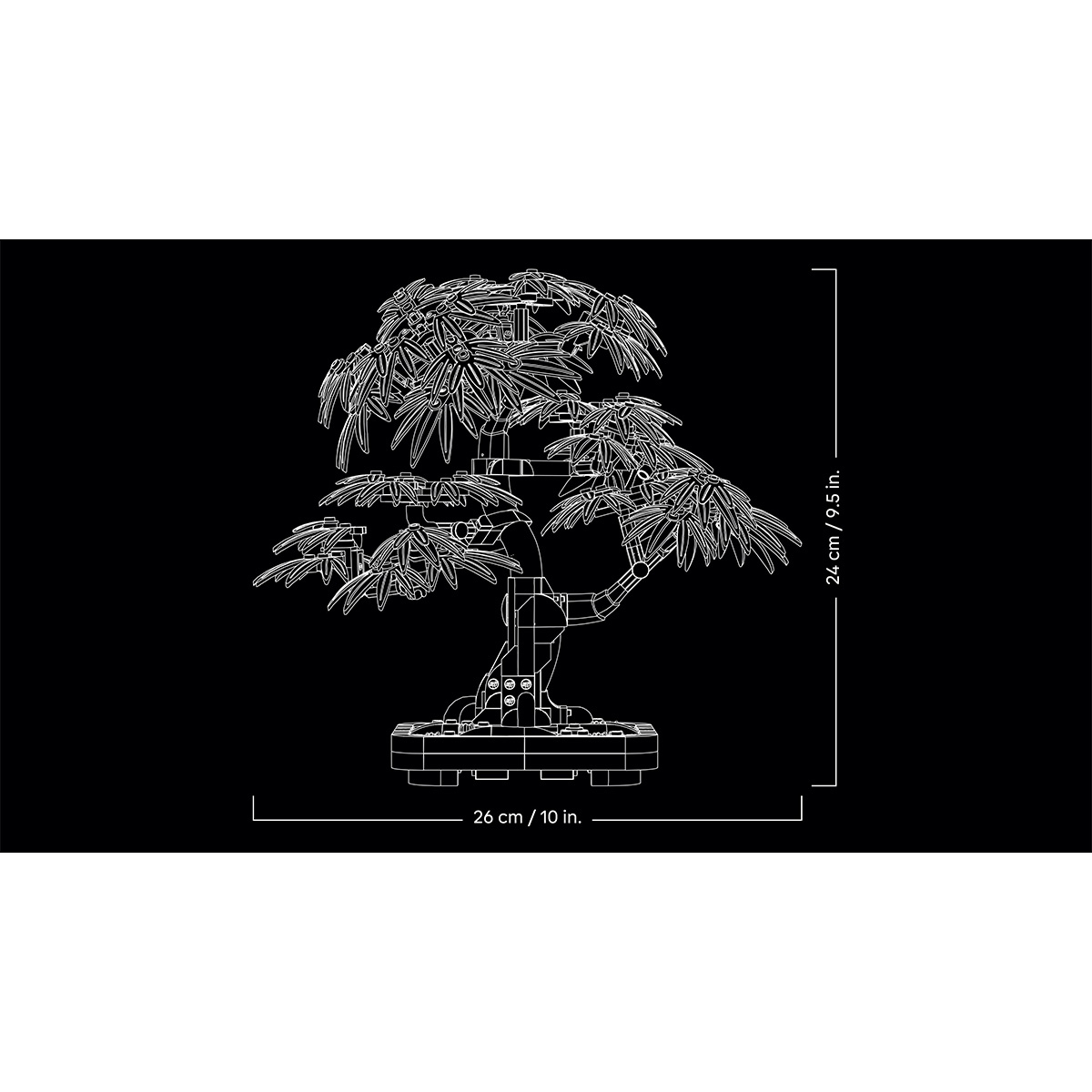 Set LEGO Botanicals pentru 18+ ani, cu 474 piese, destinat construirii unei plante decorative tip bonsai. Modelul reproduce un artar japonez rosu, cu frunze in nuante de rosu si portocaliu, asezate intr-un ghiveci verde-inchis.