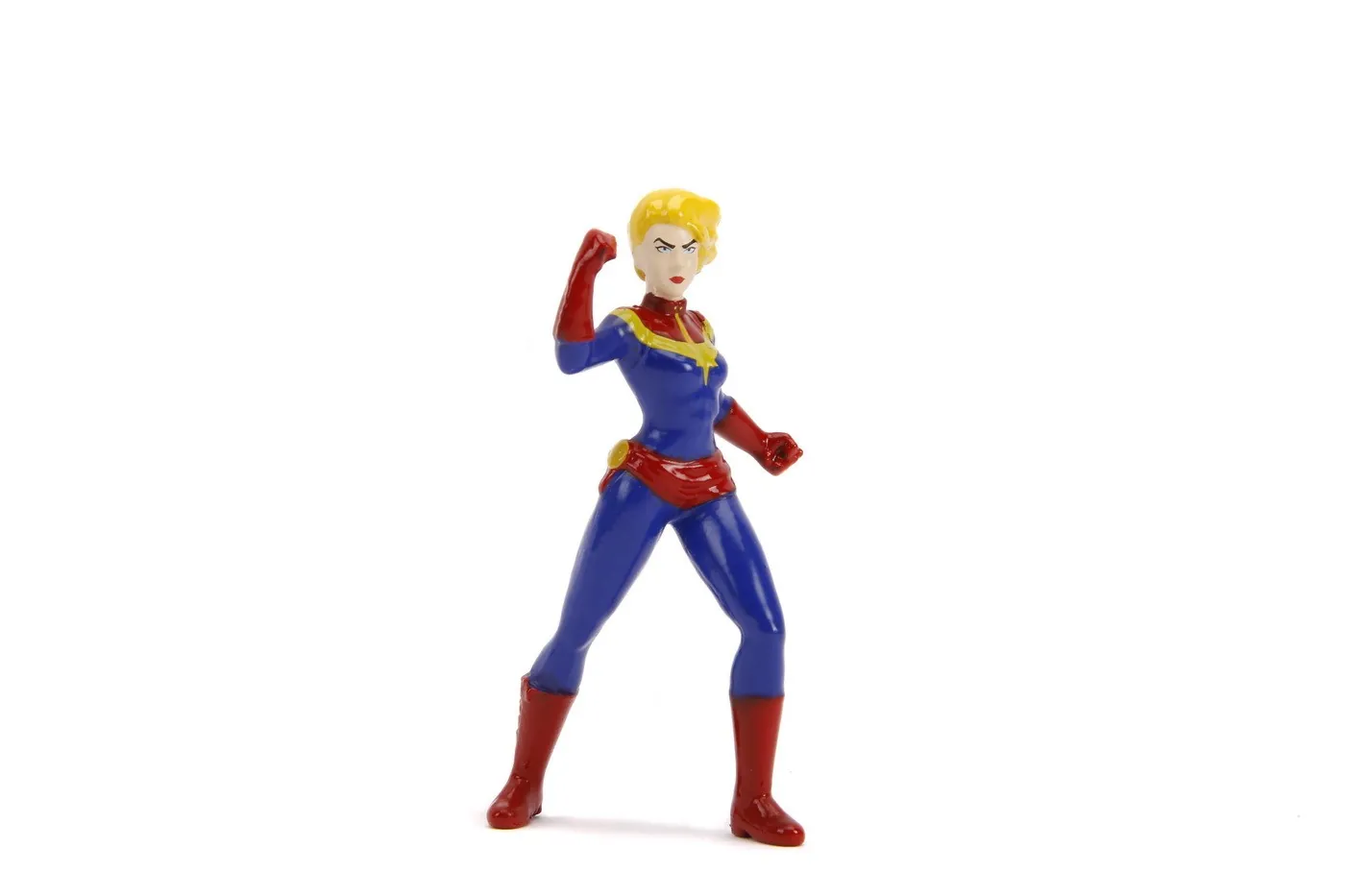 Masinuta de metal Marvel Ford Mustang. Portierele, capota si portbagajul se pot deschide. Masina este construita la o scara de 124, include si figurina de metal Captain Marvel. Masina de colectie are caroseria turnata si confectionata din metal si componente de plastic. Portierele, capota si portbagajul se deschid lasand sa se vada detaliile interioare create cu mare precizie.