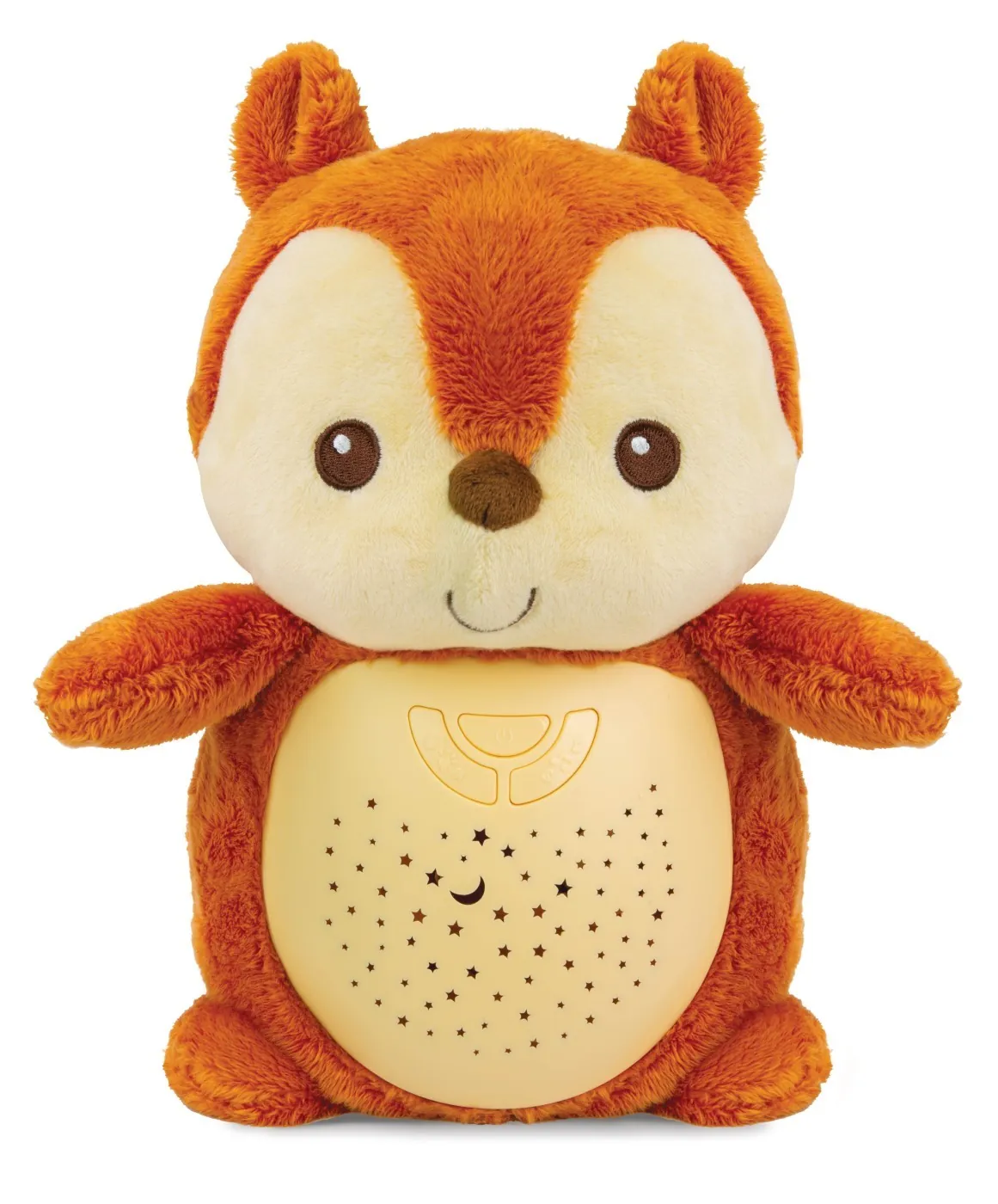 Proiectorul si lampa de veghe 2-in-1 in forma de veverita este o jucarie multifunctionala si educativa, perfecta pentru a linisti si a acompania copiii de la nastere. Aceasta jucarie inovatoare ofera o combinatie de lumina linistitoare si sunete placute, creand un mediu confortabil si sigur pentru somnul celor mici. Proiectorul are capacitatea de a proiecta un cer instelat pe tavan sau pereti, transformand camera copilului intr-un univers magic si relaxant. Lampa de veghe emite o lumina blanda in diferite culori, care poate fi ajustata pentru a se potrivi preferintelor copilului. Veverita este si un prieten de noapte imbratisabil! Designul sau moale si placut la atingere permite copiilor sa o tina in brate, oferindu-le un sentiment suplimentar de confort si securitate. Veverita luminoasa devine astfel un companion ideal pentru copiii mici, care se pot bucura de prezenta ei atat in timpul somnului, cat si in timpul jocului. Proiectorul si lampa de veghe 2-in-1 in forma de veverita este echipat cu un buton de muzica care ofera doua optiuni de sunet sunete din natura sau melodii de leagan linistitoare. Sunetele din natura, precum ciripitul pasarilor sau sunetul apei curgatoare, contribuie la crearea unui mediu relaxant si natural, ideal pentru a calma si a adormi copilul. Melodiile de leagan linistitoare sunt perfecte pentru a induce somnul, oferind o atmosfera calma si placuta.